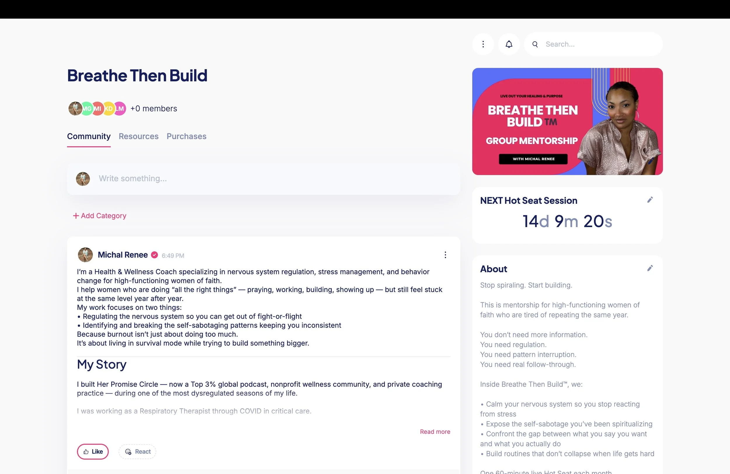The Group Mentorship “Breathe Then Build” Is the Best Option For You! Access all the exclusive resources, 2 Live Sessions Per Month, and a supportive non-judgemental community to do it with.